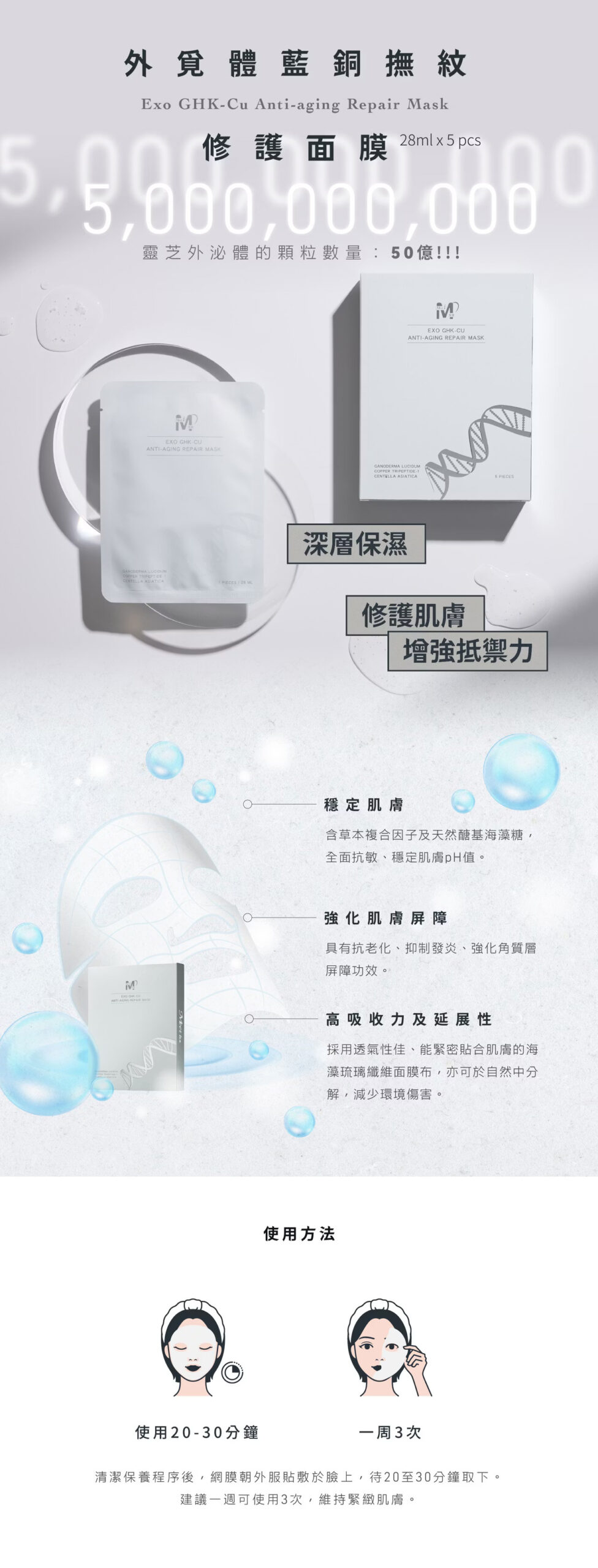 以靈芝外泌體及藍銅胜肽為核心成分,蘊含多種天然修護成分,具有高效的抗老化與修護效果。